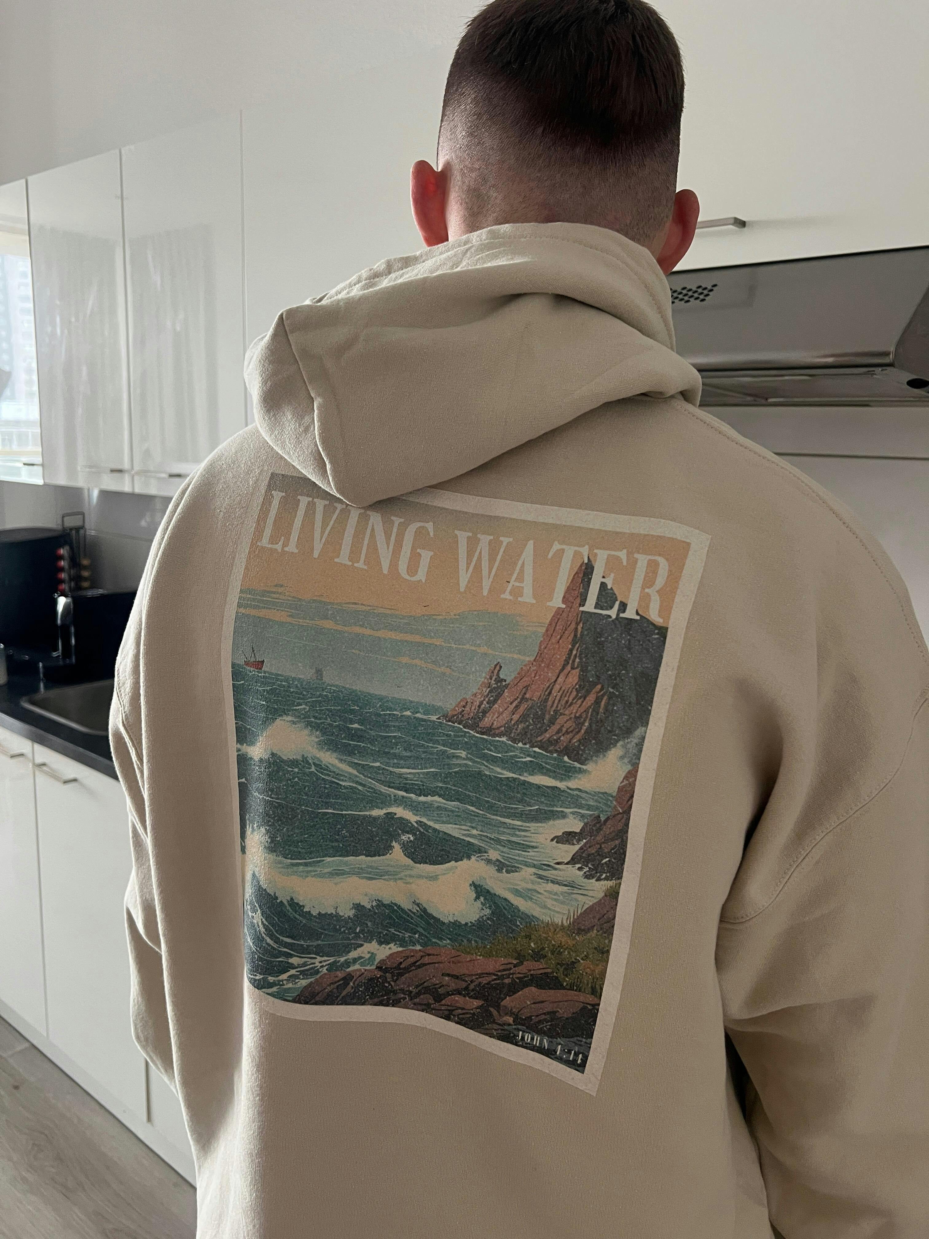This hoodie carries the words of Jesus: “Whoever drinks the water I give them will never thirst.” Designed in a vintage poster style, it’s a statement of promise, comfort, and the eternal flow of grace.